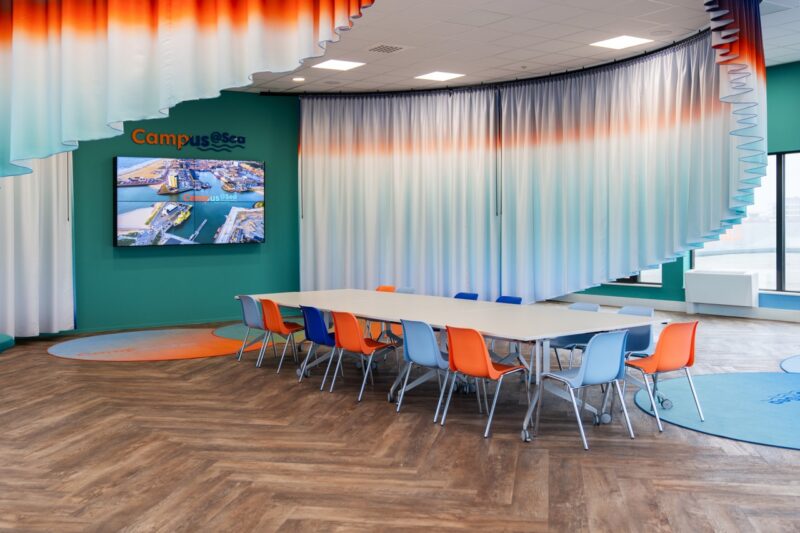 The Campus Event Space is the premier location for events that align with the goal of Campus@Sea: to stimulate innovation around the sustainable multiple use of the North Sea. With its virtually 360-degree view of the harbour, the sea and the city, the space offers a unique experience reminiscent of Panorama Mesdag.